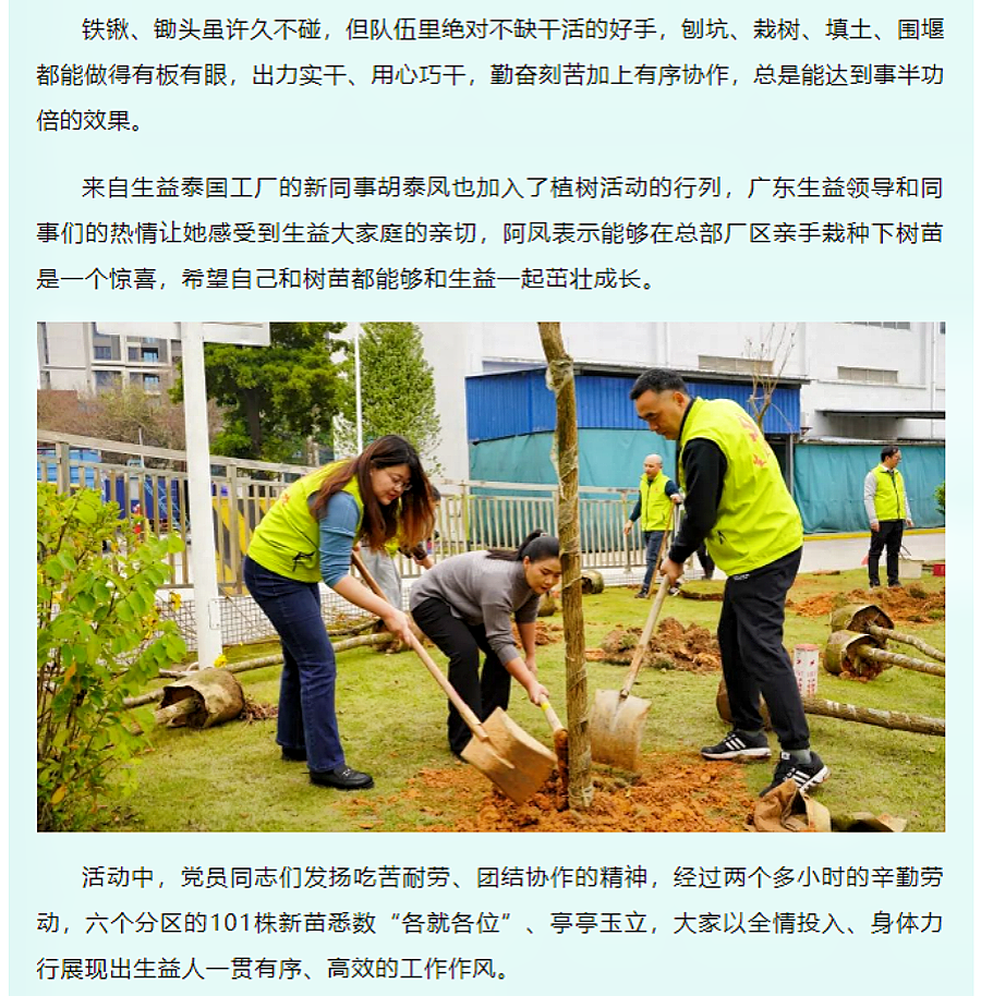 党员植树做先锋 美化厂区展新颜——B体育·BSPORTS科技党员志愿者、管理人员植树活动