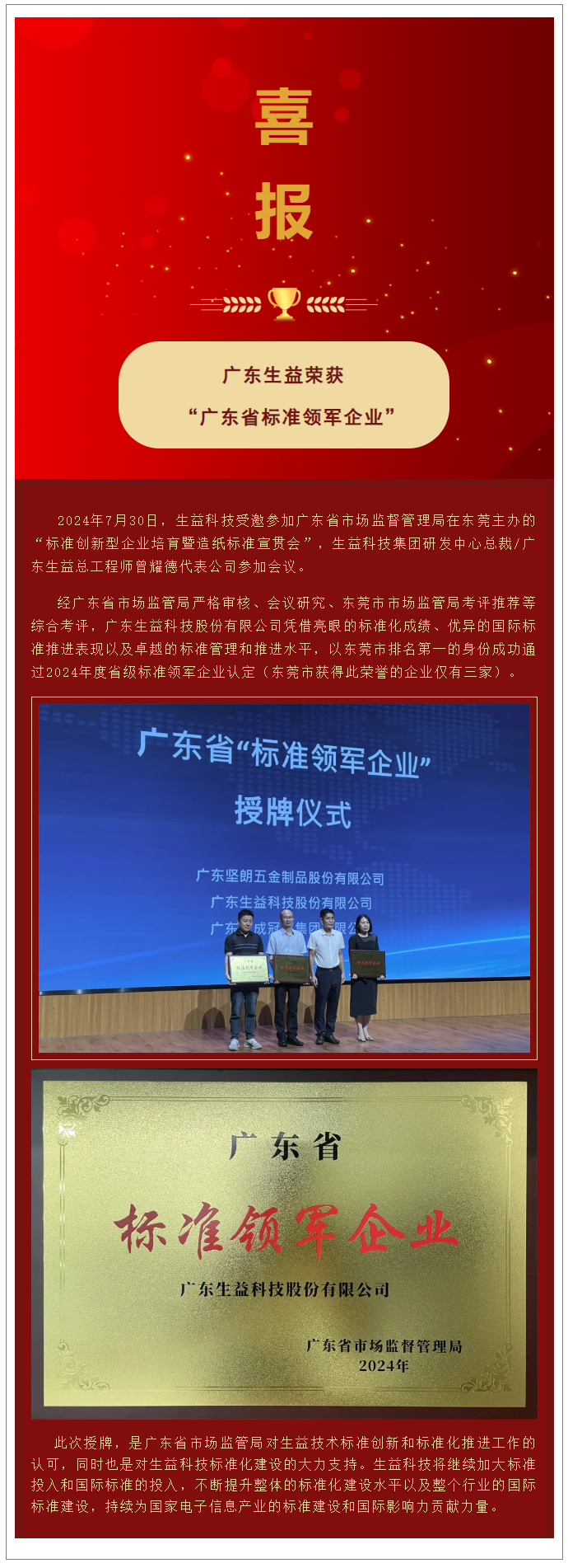 B体育·BSPORTS科技荣获“广东省标准领军企业”称号