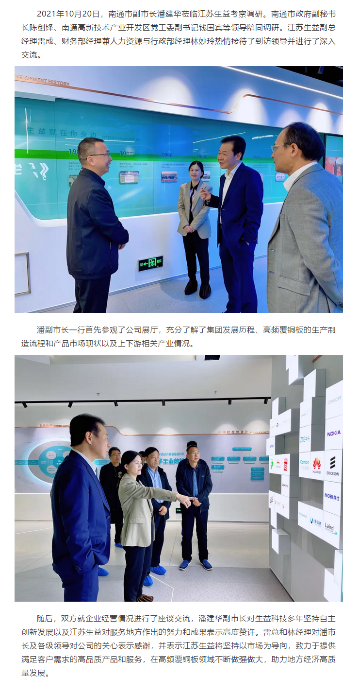 南通市副市长潘建华莅临江苏B体育·BSPORTS考察调研
