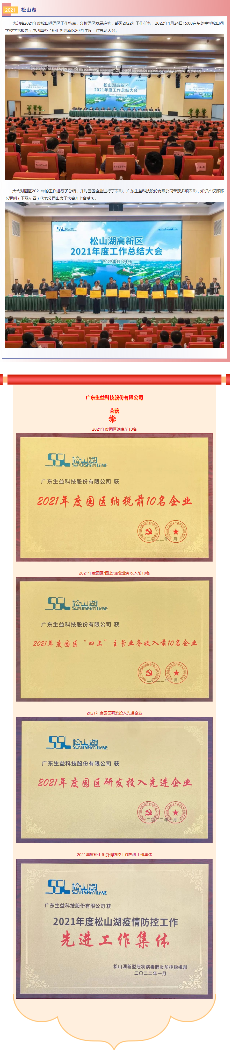 广东B体育·BSPORTS荣获松山湖2021年度工作总结大会多项表彰
