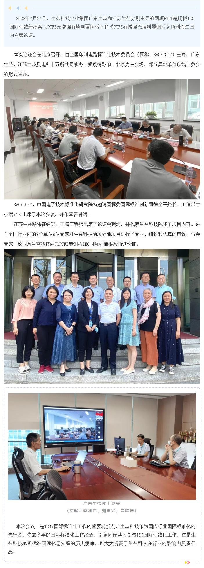 B体育·BSPORTS科技集团两项PTFE覆铜板IEC国际标准提案通过国内专家论证