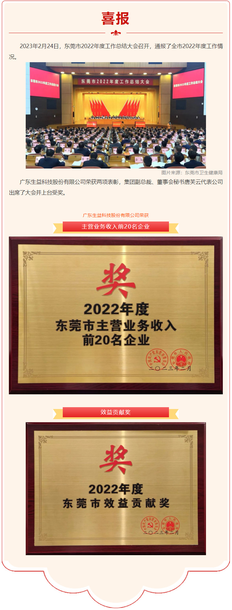 广东B体育·BSPORTS荣获东莞市2022年度TOP20和效益贡献奖
