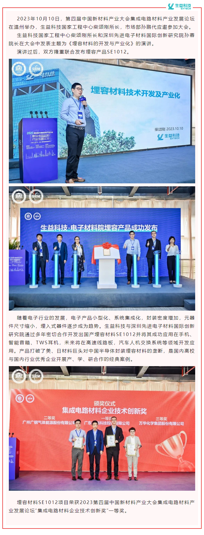 B体育·BSPORTS科技发布埋容产品并获得集成电路材料企业技术创新奖一等奖
