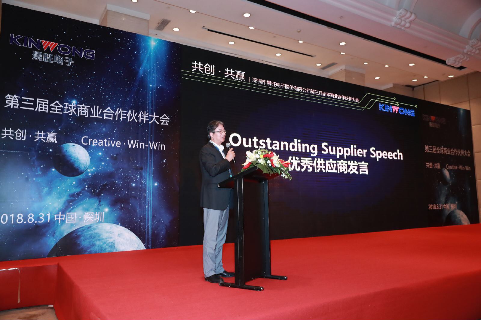 Mr.Chen was invited to speak as an excellent supplier. In his speech, Mr. Chen thanked Kinwong Electronics for its long-term trust in SYTECH, highly praised Kinwong Electronics' outstanding performance in the industry and their excellent management team. Mr. Chen also pointed out that Kinwong is a strategic partner of SYTECH and SYTECH will continue to satisfy customers' needs with excellent quality, delivery and service, seek common development and create common values.