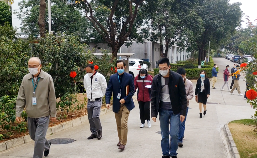 On February 11, 2020, joint epidemic inspection team, including Tongzhou District Party Secretary Chen Yonghong, Tongzhou Distirct Standing Committee member Xu Jinbiao, Tongzhou District Reform and Development Committee, District Committee and Economic Development Bureau, conducted epidemic control inspection. Lin Miaoling, team leader of SYTECH (Jiangsu) COVID-19 Prevention and Control, and relevant team members escort the inspection.