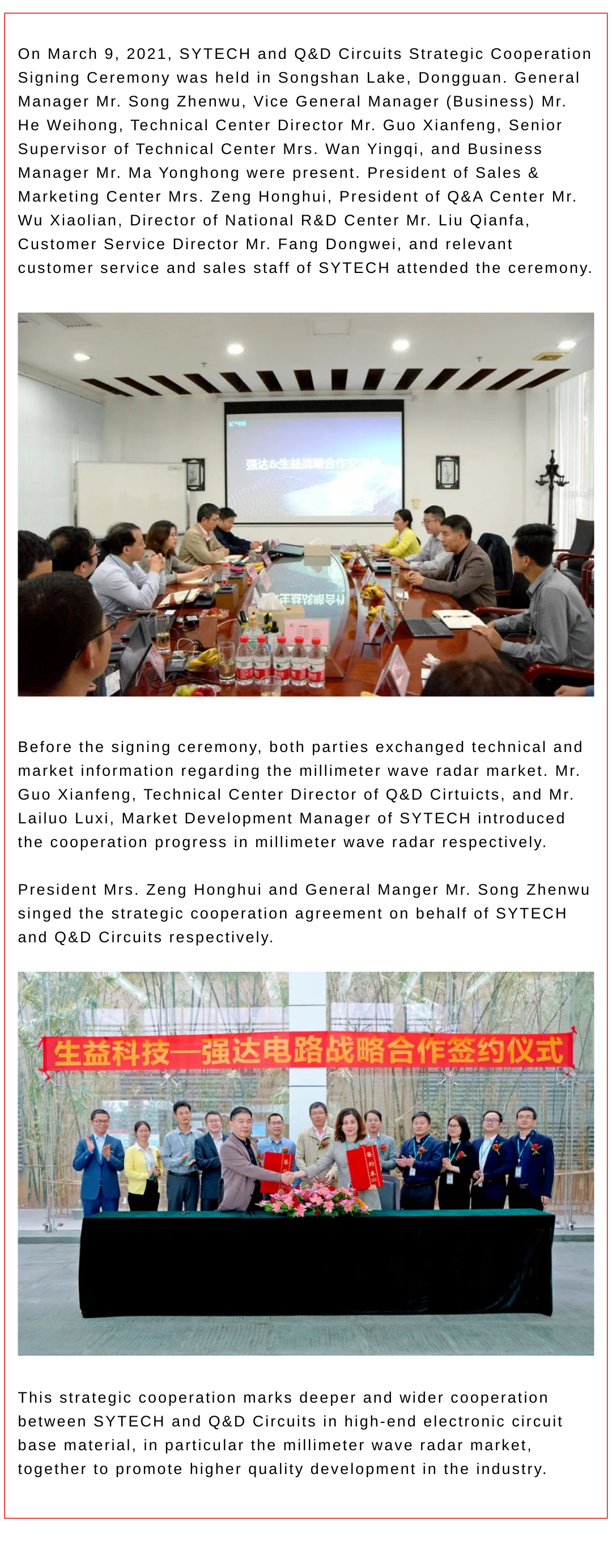 SYTECH and Q&D Circuits Signed Strategic Cooperation Agreement