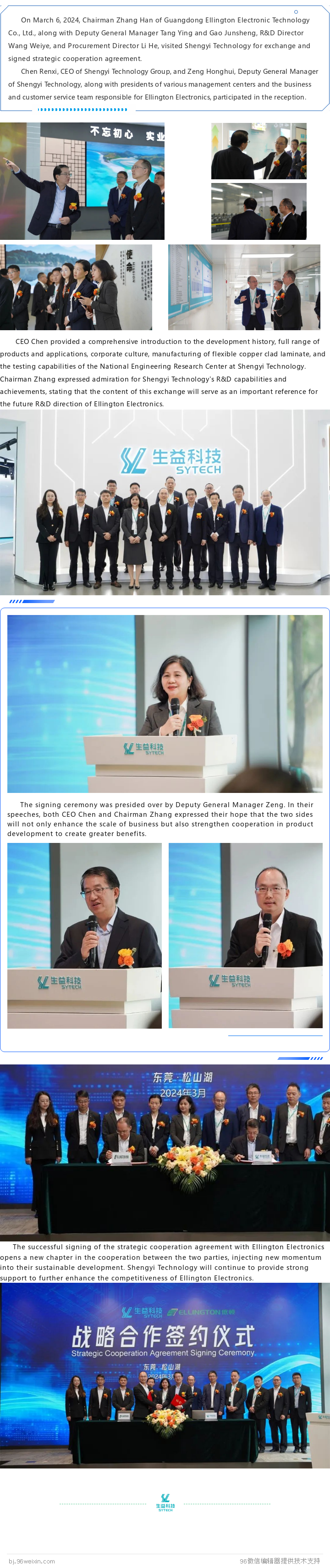 Shengyi Technology and Ellington Electronics Sign Strategic Cooperation Agreement